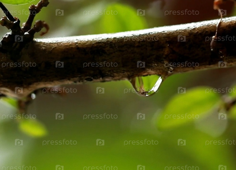 Капли дождя на ветке дерева