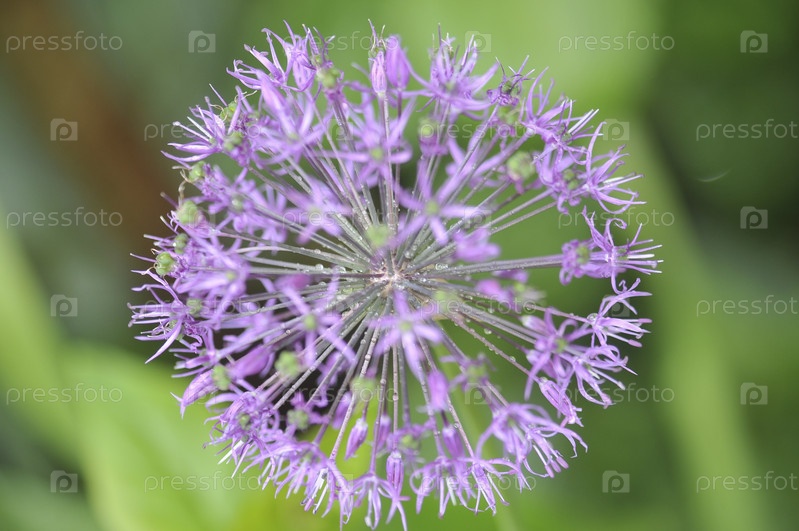 Капли дождя на декоративном чесноке.Raindrops on decorative garlic