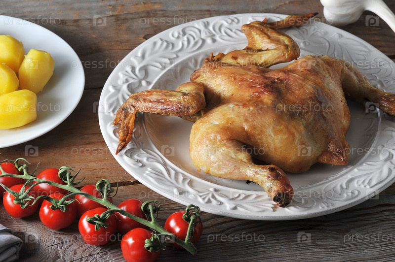 Жареная курица и отварной картофель