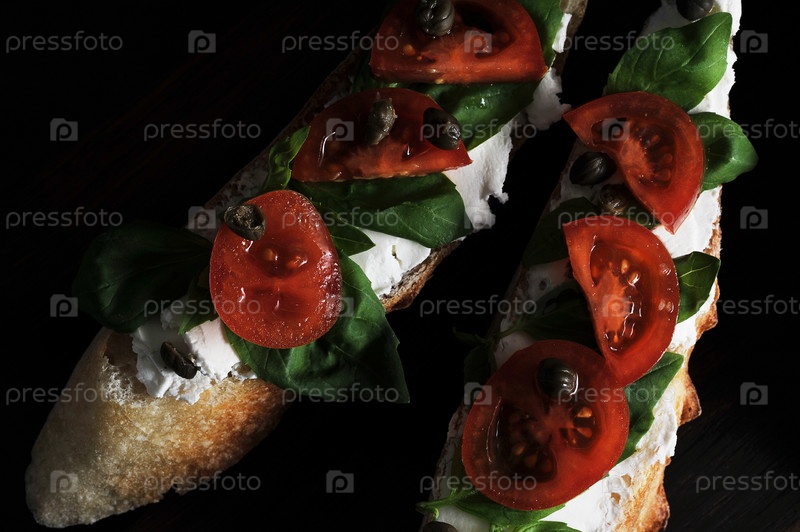 Брускетта с творогом, базиликом и черри