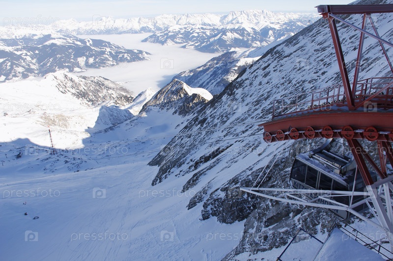 Фуникулер на вершине горы зимой, Китцштайнхорн, Австрия