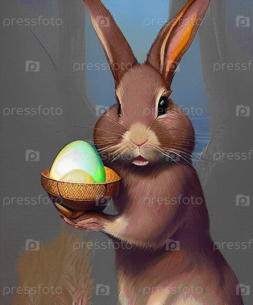 Пасхальный рисунок зайца с яйцами в тарелке