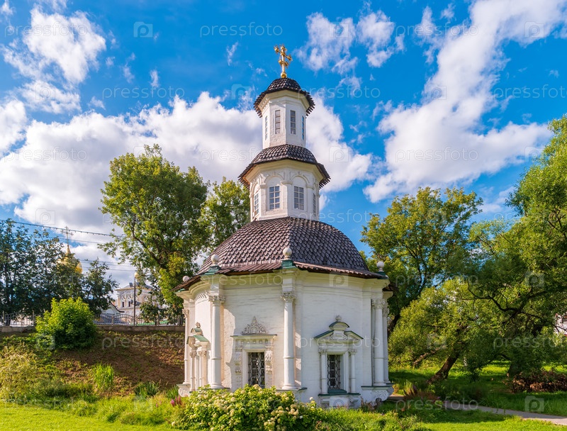 Сергиев Посад, Россия. Вид на часовню "Пятницкий колодец" в летний день. Золотое кольцо России