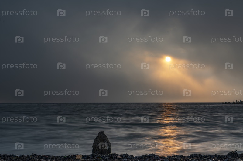 Закат солнца в тучах на море