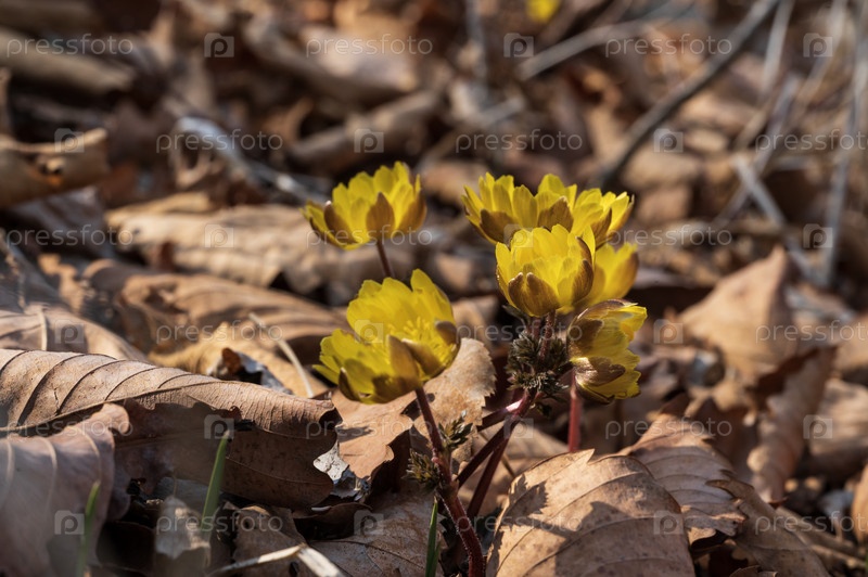 Желтые цветы цветут в лесу
