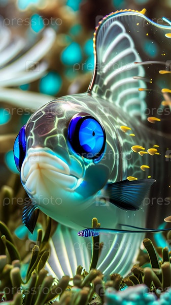 Абстрактный фон с фантастической рыбой с голубыми глазами