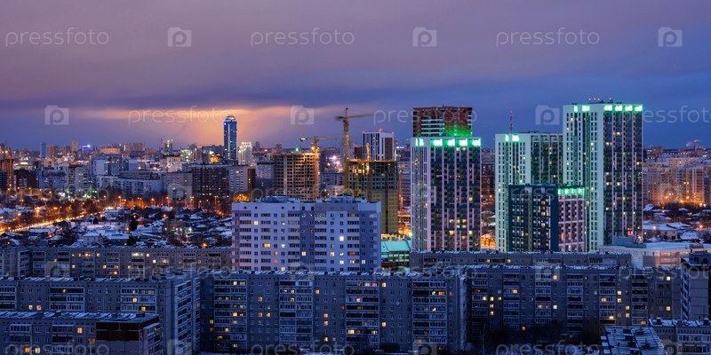 Ночные дома с отблеском заката