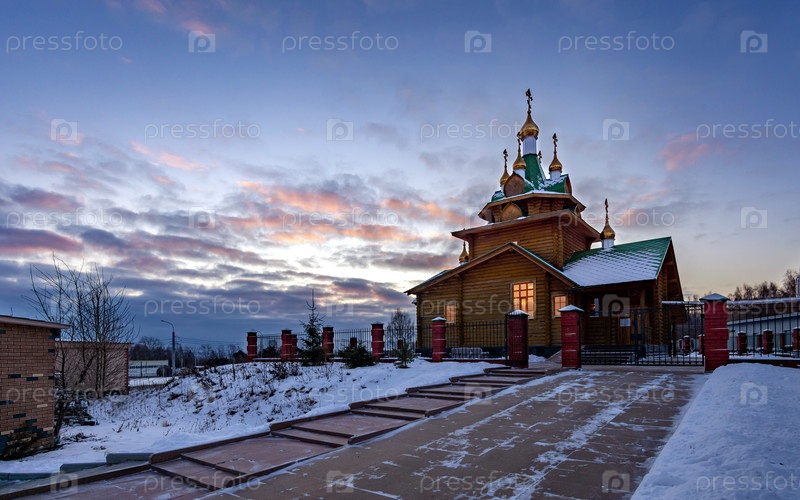 Церковь Святого мученика Аркадия Екатеринбургского на фоне предрассветных облаков зимой