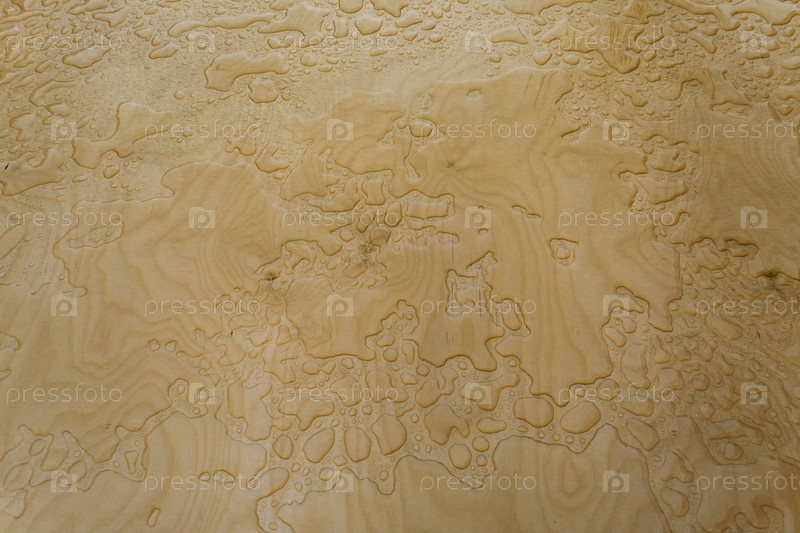 Мокрый деревянный фон, капли воды на поверхности фанеры после дождя
