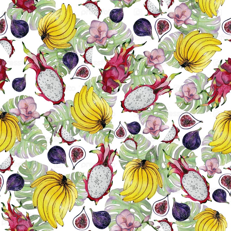 Бесшовный паттерн, Фрукты. Акварельная иллюстрация