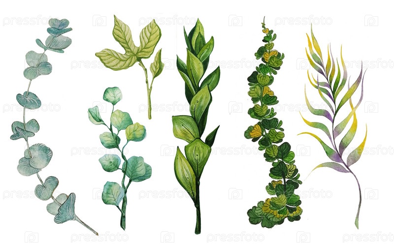 Сет растения, акварельная иллюстрация