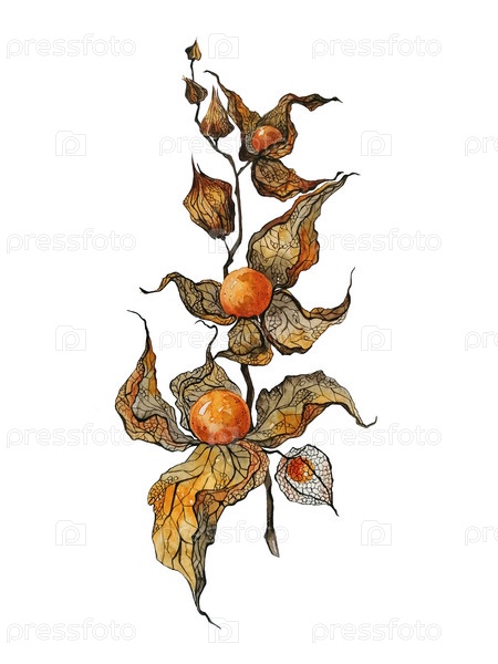 Физалис, акварельная иллюстрация