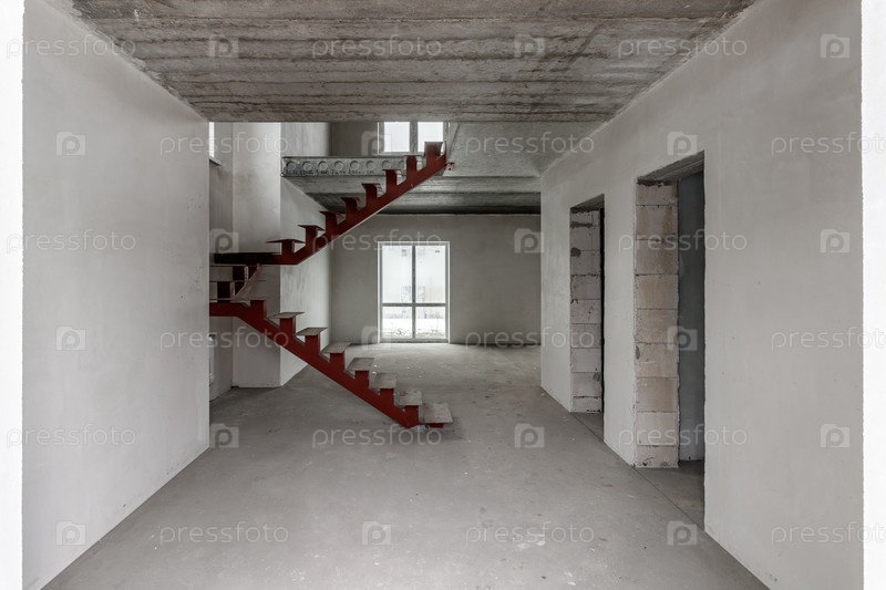 Ремонт в здании. Здание с металлической лестницей во время ремонта. Строительная площадка в доме без людей. Строительство нового дома. Строительство и архитектура