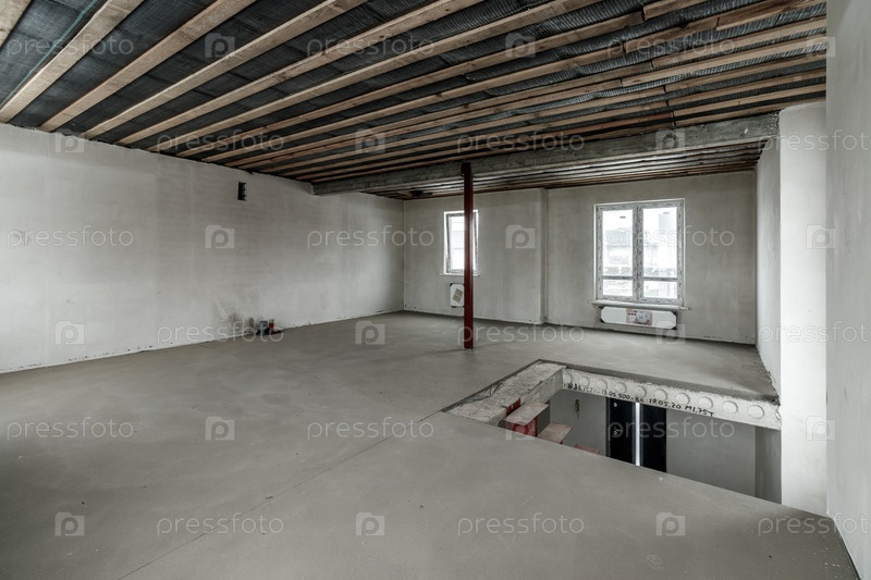 Ремонт в здании. Здание с металлической лестницей во время ремонта. Строительная площадка в доме без людей. Строительство нового дома. Строительство и архитектура