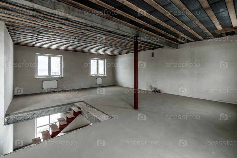 Ремонт в здании. Здание с металлической лестницей во время ремонта. Строительная площадка в доме без людей. Строительство нового дома. Строительство и архитектура