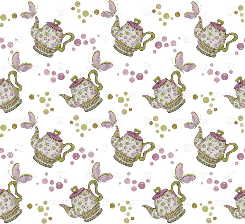 Чайники, бесшовный паттерн, акварельная иллюстрация