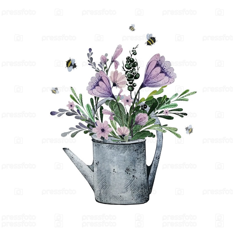 Букет в Лейке. Акварельная иллюстрация