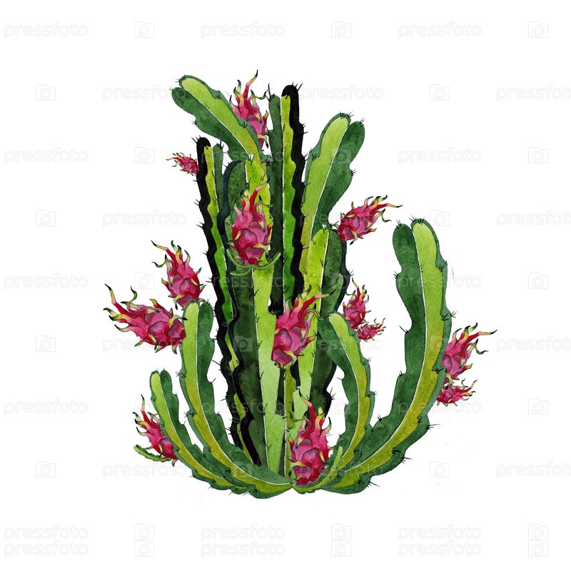 Кактус Драконий фрукт. Акварельная иллюстрация