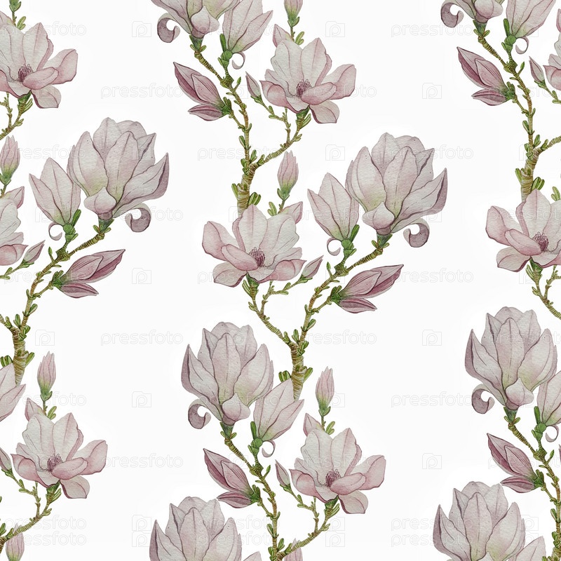 Магнолия, бесшовный паттерн. Акварельная иллюстрация