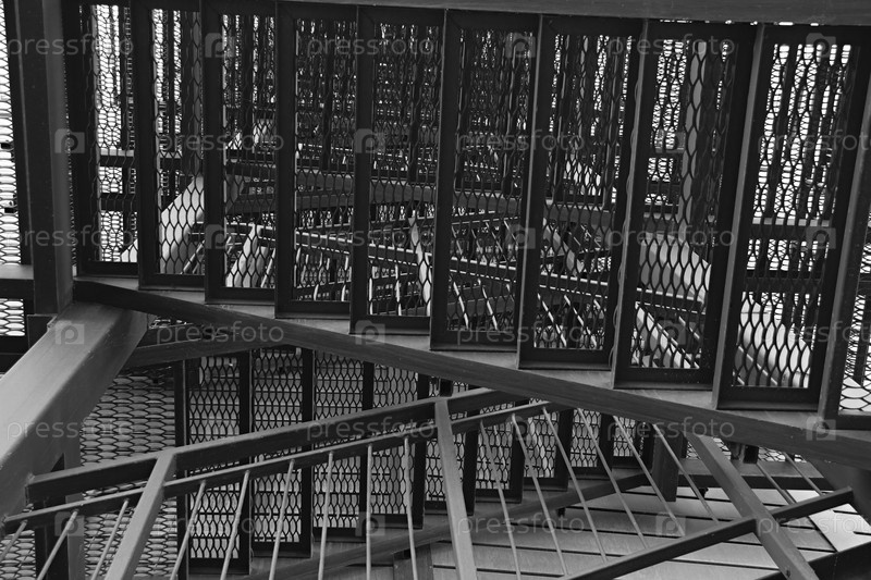 Наружные металлические пожарные лестницы современного здания, внешняя современная металлическая лестница