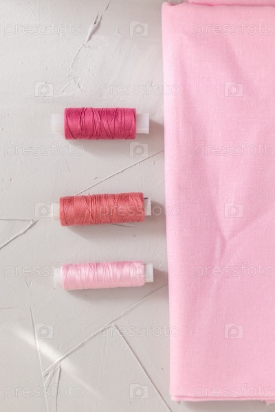Цветная хлопковая нить на сером фоне, медленная мода и концепция домашнего шитья