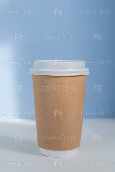 Пустой бумажный стаканчик на голубом фоне