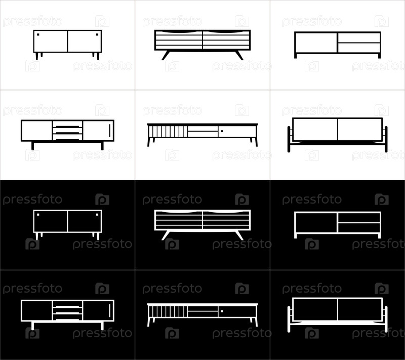 Шесть контурных иконок мебели. Тумбы. Белые и черные