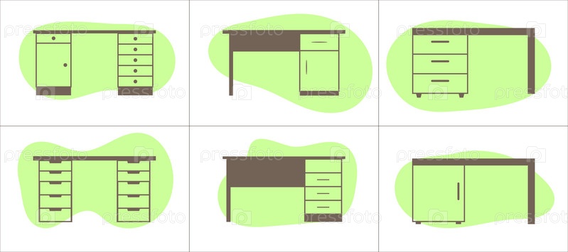 Набор иконок мебели в плоском стиле. Столы