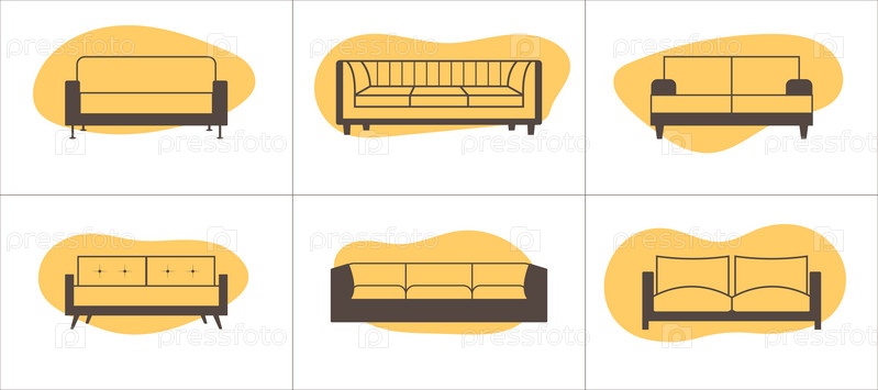 Контурные иконки диванов. Иллюстрация в плоском стиле