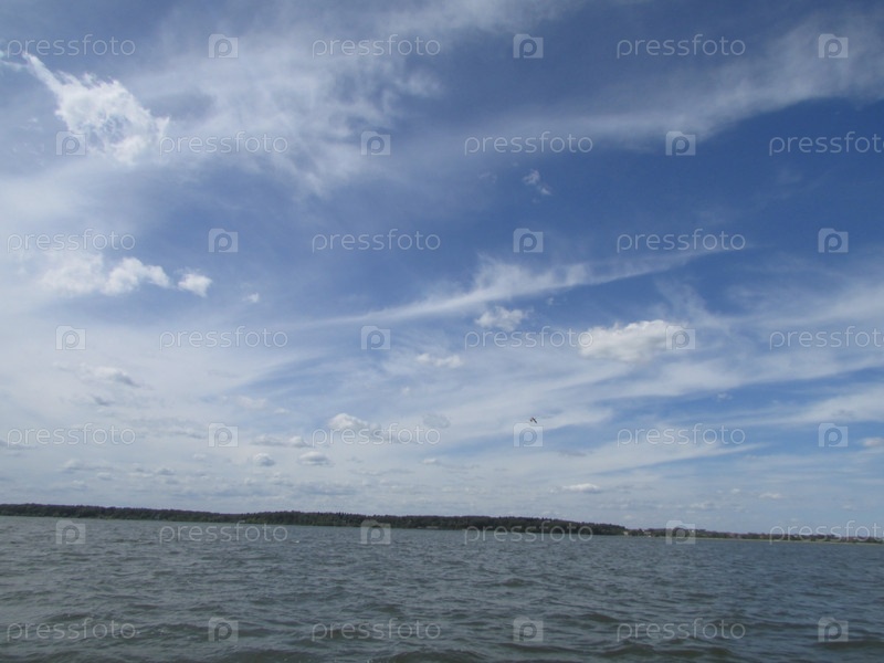 Красивое голубое небо над озером