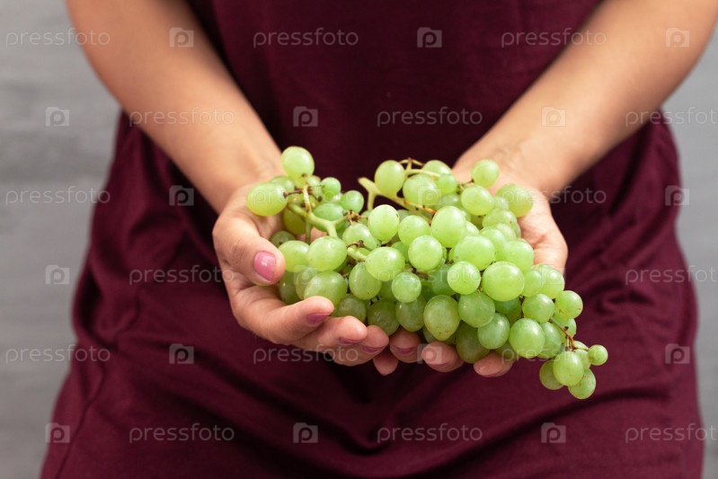 Женщина держит гроздь винограда