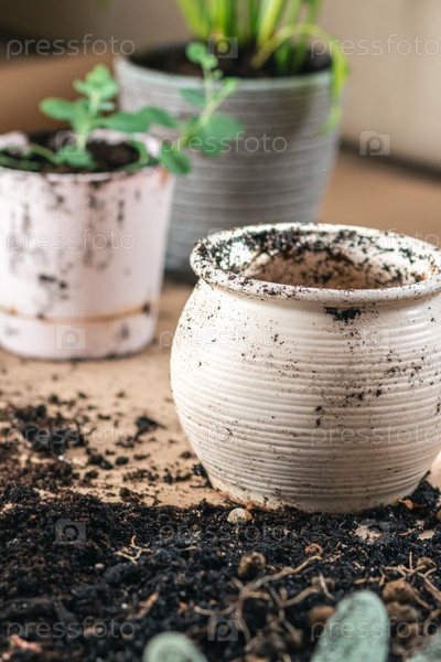 Концепция домашнего садоводства, пересадка растений в горшках