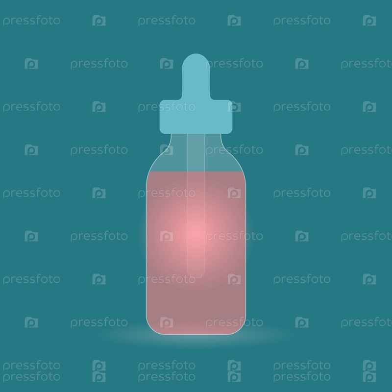 Медицинская бутылка с пипеткой на сине-зеленом фоне