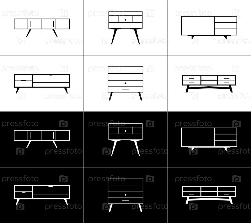 Набор контурных иконок мебели. Тумбы. Черные и белые