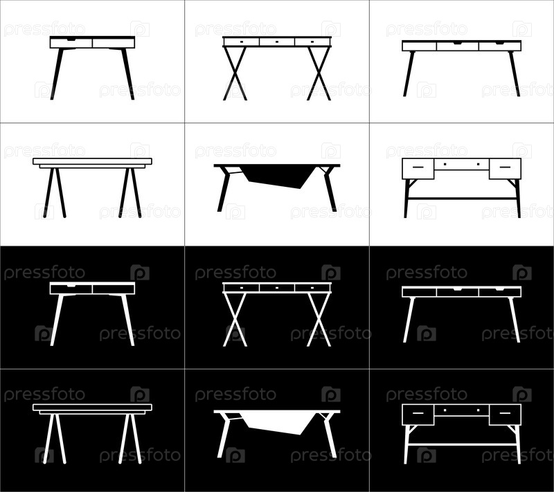 Контурные иконки мебели. Письменные столы. Белые и черные