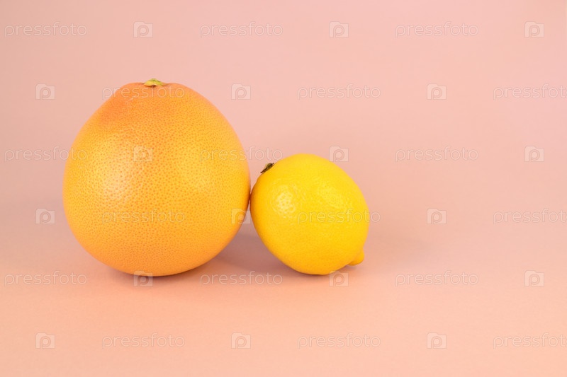 Вид сбоку грейпфрута и лимона на розовом фоне