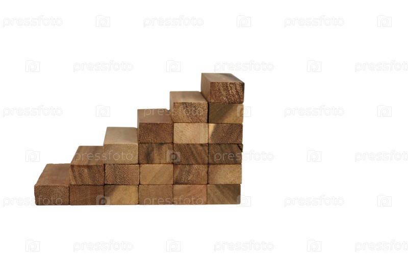 Вид сбоку на лестницу, сделанную из деревянных игрушечных блоков и изолированную на белом фоне