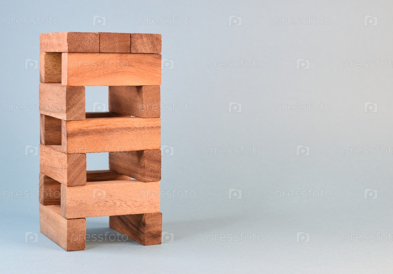 Башня, построенная из деревянных игрушечных блоков