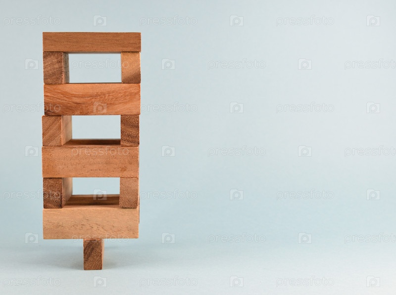 Вид спереди на башню, построенную из деревянных блоков и стоящей на одном блоке