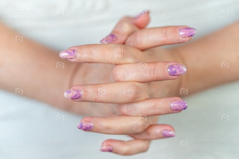 Стильный модный женский маникюр. Женский уход за руками. Руки и спа-релаксация. Маникюр с блестящим розовым лаком для ногтей. Женские руки с французским маникюром