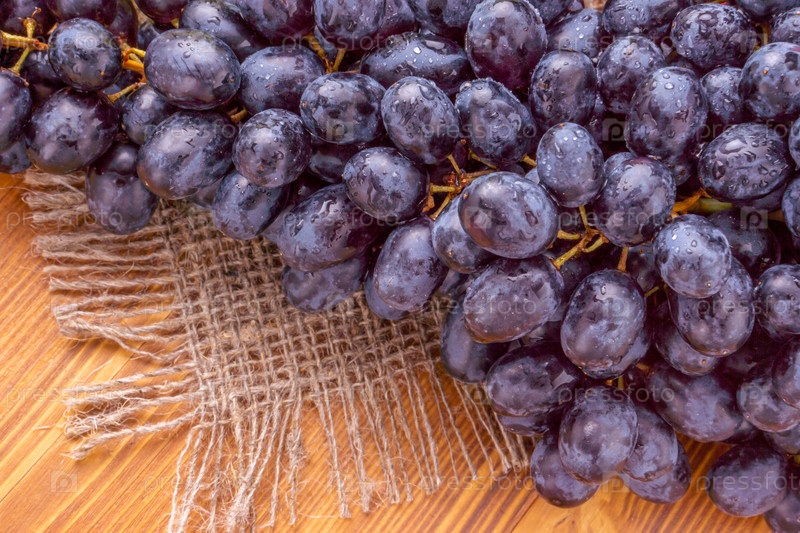 Разный виноград и яблоки на деревянном фоне. Здоровая пища