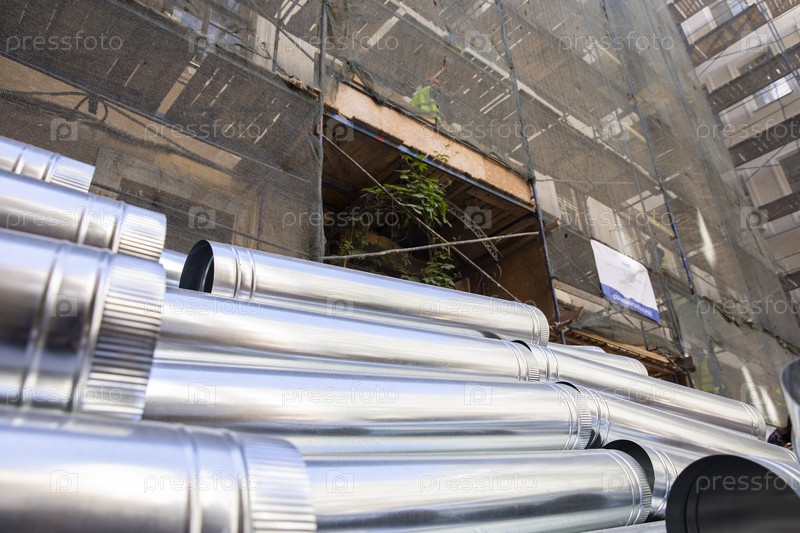 Россия. Санкт-Петербург. Капитальный ремонт фасада жилого дома. Водопроводные трубы. Россия. Санкт-Петербург. Ремонт фасады жилого здания. Дренажные трубы