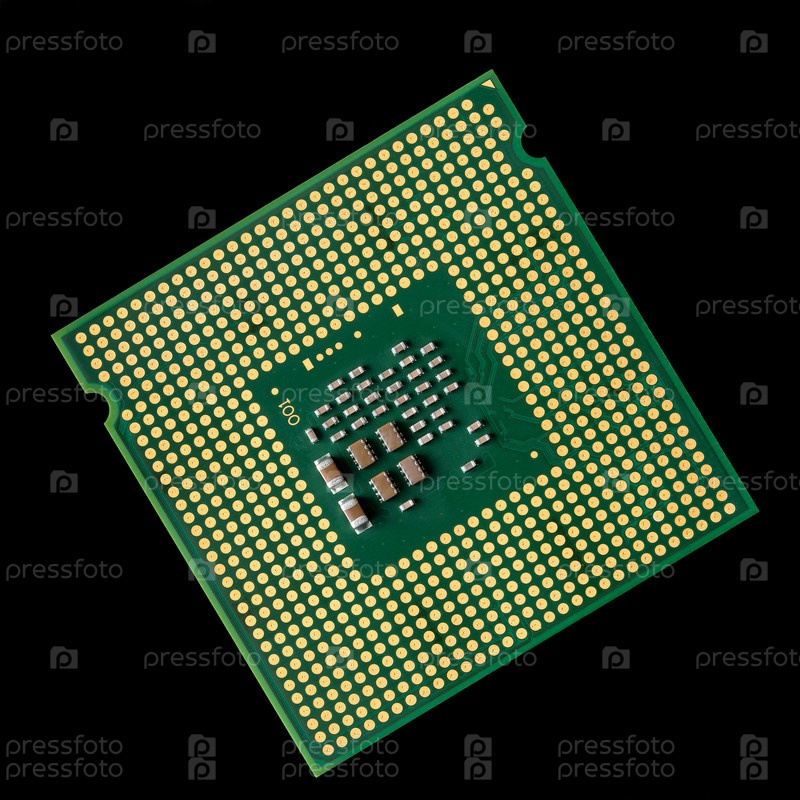 Обратная сторона микропроцессора с контактными площадками крупным планом