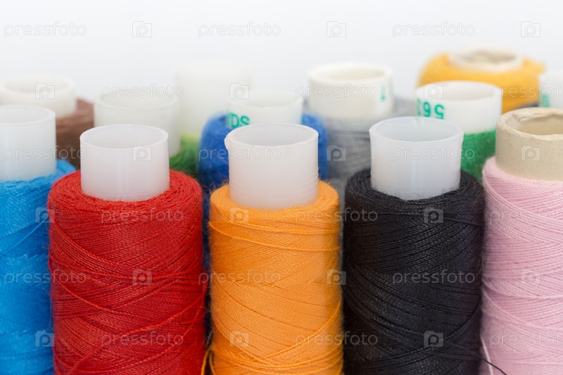 Шпульки с разноцветной нитью. Макро с малой глубиной резкости