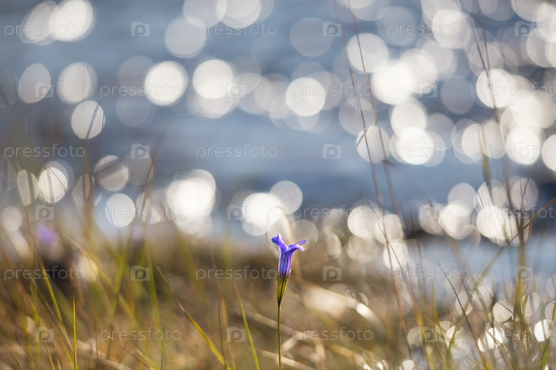 Одинокий фиолетовый цветок с размытым фоном с боке