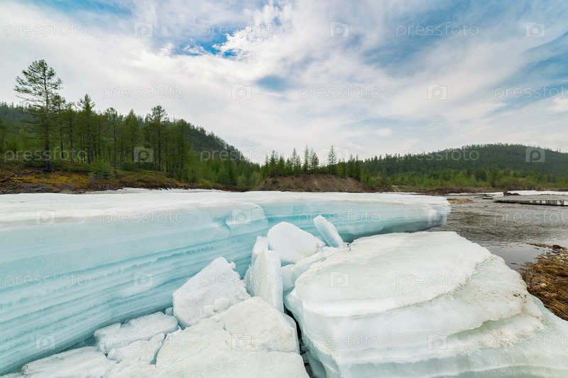 Пейзаж с бирюзовым льдом на реке