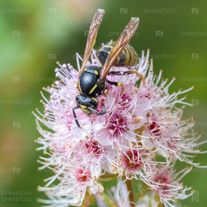 Оса на нежно-розовых цветках