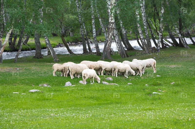 Стадо овец на лугу