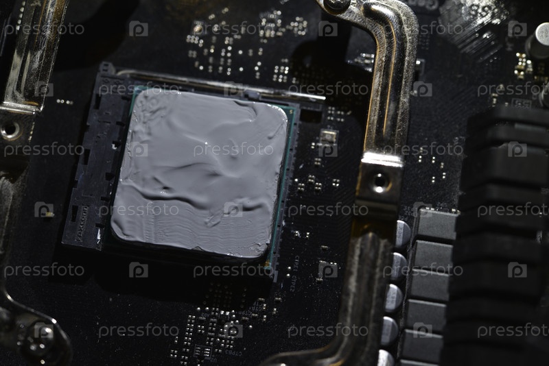 Нанесение термопасты на поверхность процессора компьютера. Термоинтерфейс на процессоре