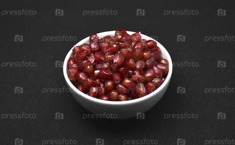 Плоды граната в керамической миске. Зерна плодов граната